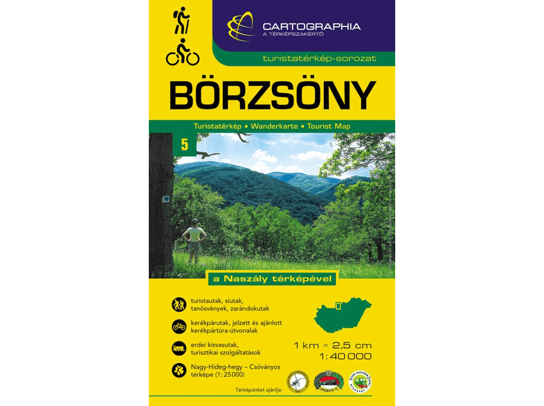 A térképek tartalmi javítását helyszíneléssel, a beérkezett észrevételek segítségével, valamint a helyi. A börzsöny a cartographia turistatérkép sorozatának tagja. A turistatérkép tartalmi javítását helyszíneléssel, a beérkezett észrevételek segítségével, valamint szakemberek és a helyi. Börzsöny turistatérképe ajánlott kerékpártúra útvonalakkal és turisztikai információkkal. Szintvonalköz 10 m, domborzatárnyékolás nevezetességek.